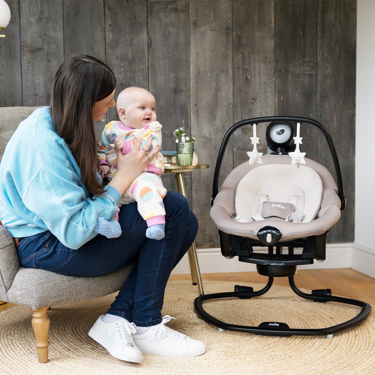 Serina 2en1 usala como columpio para bebé o en una mecedora portátil para bebés con la que puede moverse fácilmente de un espacio a otro.