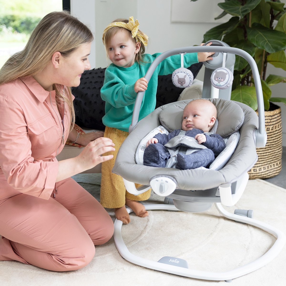 Serina 2en1 usala como columpio para bebé o en una mecedora portátil para bebés con la que puede moverse fácilmente de un espacio a otro.