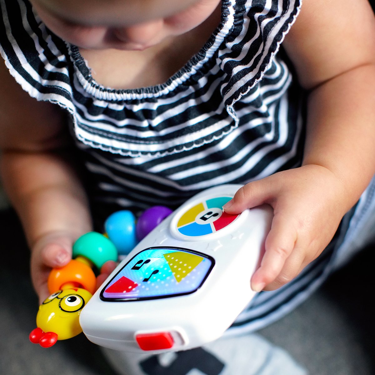 El Take Along Tunes está diseñado para ser fácil de sostener y manipular, lo que ayuda a desarrollar la motricidad fina del bebé mientras explora sus primeras experiencias musicales. - Portátil y fácil de limpiar: