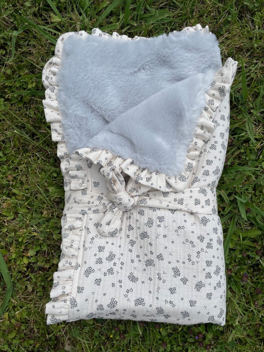 Manta realizada por una cara en tejido de algodón estampado e interior en tejido polar muy cálido