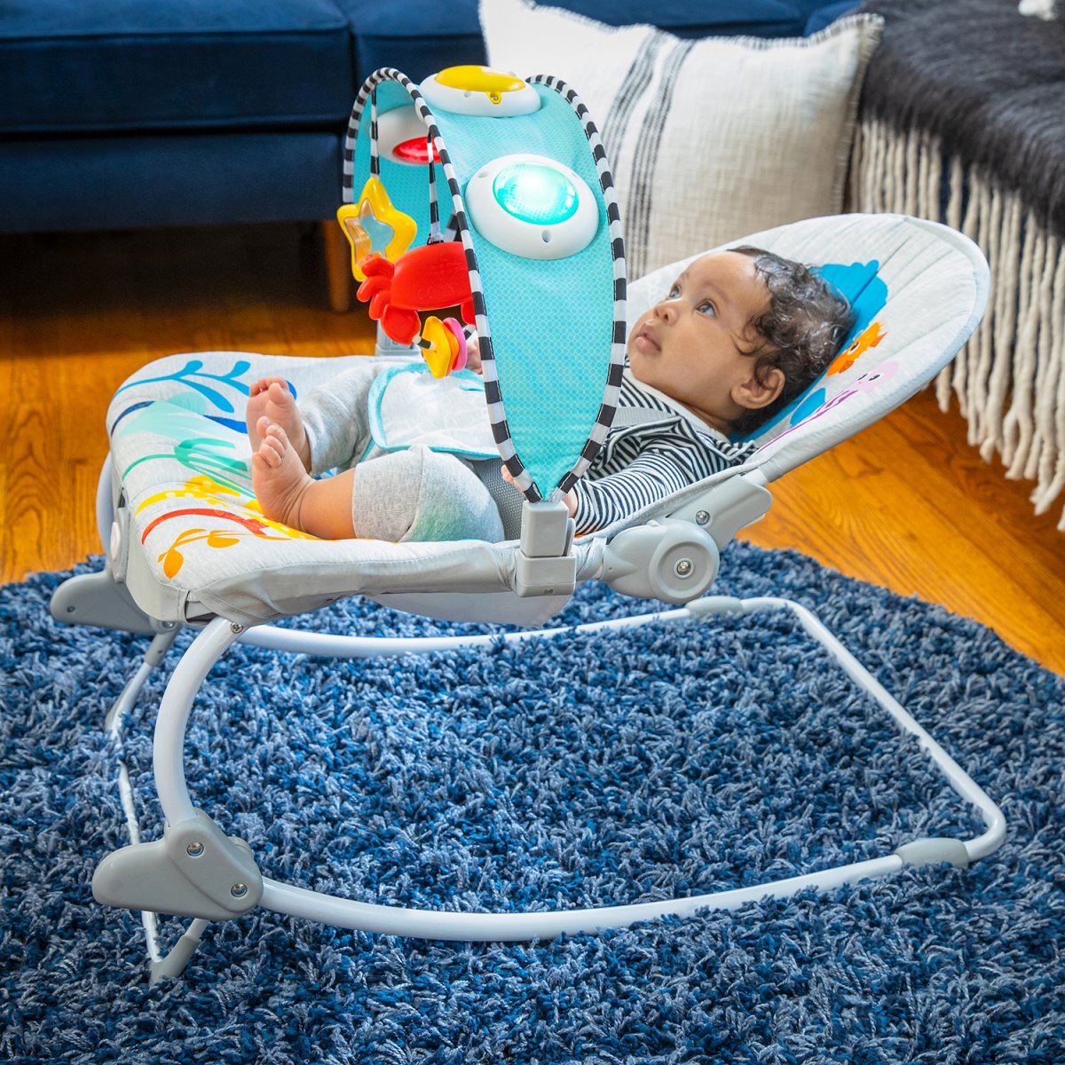 - Se adapta al crecimiento del bebé: La mecedora comienza como un asiento para bebés con música, luces y vibraciones relajantes. Luego, se convierte en una silla fija para bebés mayores y finalmente en una mecedora para niños pequeños. Con un peso máximo de 40 libras, esta mecedora es perfecta para acompañar a tu pequeño durante su desarrollo.