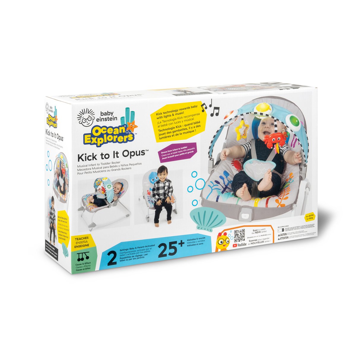 - Diversión activada por el bebé: En el modo activado por el bebé, las patadas del bebé generan luces danzantes, más de 25 melodías y sonidos, lo que mantiene a tu bebé motivado y entretenido mientras explora el mundo a su alrededor.