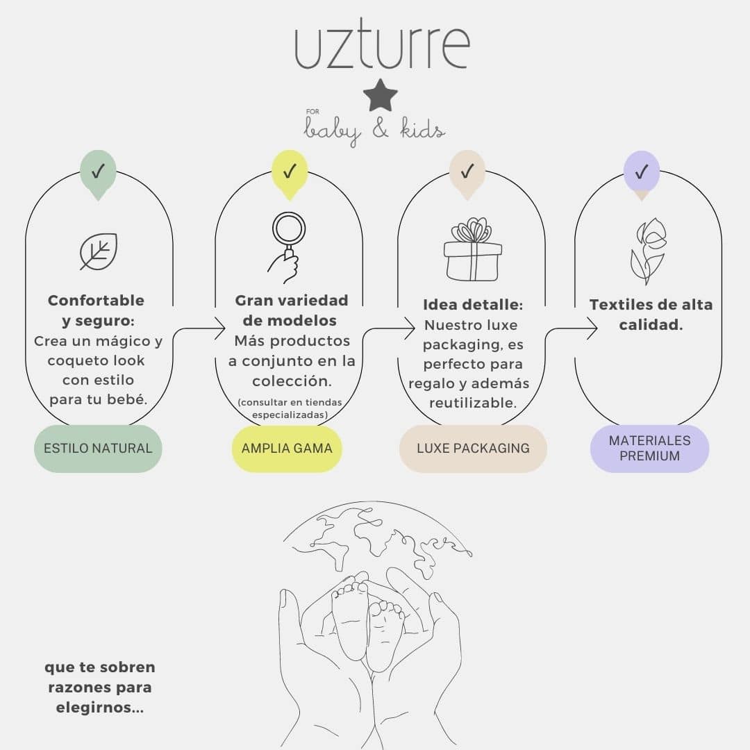 Confortable saco de silla, ideal para salir con tu bebé y disfrutar de un agradable paseo, gracias al suave tejido con el que está fabricado. Sienta y se adapta perfectamente bien en la práctica totalidad de las marcas de sillas de paseo del mercado. Dispone de práctica apertura total, gracias a sus 2 cremalleras laterales con las que podrás acceder rápidamente a tu pequé, teniendo la posibilidad de quitar completamente la encimera del saco, dejándolo así solo con la parte de la espalda. En dicha espalda, dispone de ojales para adaptarlo al paso del arnés de la mayoría de las sillas de paseo del mercado. *Los ojales están realizados pero cerrados, garantizando así el estreno del producto, el cual aconsejamos sean abiertos cuidadosamente por el comprador final o el punto de venta autorizado en el cual ha sido adquirido mediante tijeras/abre-ojales, cortando por la mitad del ojal sin llegar hasta el final del cosido del mismo. VER VIDEO tutorial de apertura de ojales: https://www.uzturre.es/es/videos/1-como-abrir-ojales. Oeko-Tex Standard 100 certificada, lo que significa que todos los materiales son probados y libres de sustancias nocivas. Si te gusta puedes encontrar otros interesantes artículos de la colección, en esta línea con las mismas altas calidades. Todo realizado y diseñado en España con los mejores materiales y los tejidos de la más alta calidad