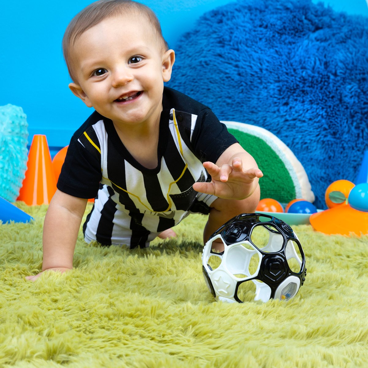 Haz que tu bebé empiece a jugar y aprender desde el primer día con la pelota sonajero Grippin’ Goals de Bright Starts! Con su diseño innovador y su tecnología Oball flexible, este juguete es perfecto para pequeños futbolistas en potencia. Ideal para los más pequeños, esta pelota fomenta el desarrollo de las habilidades motoras finas mientras ofrece una experiencia de juego divertida y estimulante.